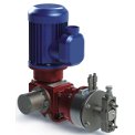 Также, часто встречаются привод с передачей крутящего момента электродвигателя через кривошипно-шатунный механизм на возвратно-поступательное движение поршня. А самым редким является гидравлический привод. Однако, диафрагменные насосы, оборудованные гидравлическим приводом отличаются очень точным дозированием. Основное достоинство такого привода состоит в том, что на рабочую мембрану воздействует не шток или поршень, а жидкость, поэтому, нагрузка на мембрану распределяется по всей поверхности. Это позволяет продлить срок службы мембраны и самого насоса в целом.